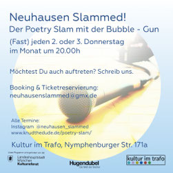 Seit Anfang 2024 gibt es diesen sehr charmanten, kuscheligen und interaktiven Poetry Slam im Neuhauser "Kultur im Trafo".